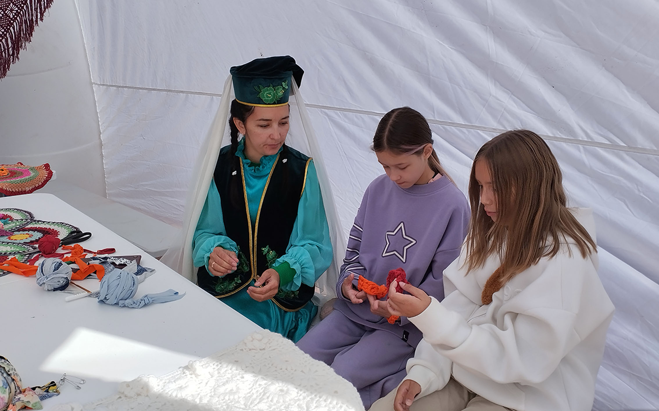 Молодежь с удовольствием принимала участие в мастер-классах по традиционным ремёслам, а взрослые с большим аппетитом дегустировали блюда национальной кухни.