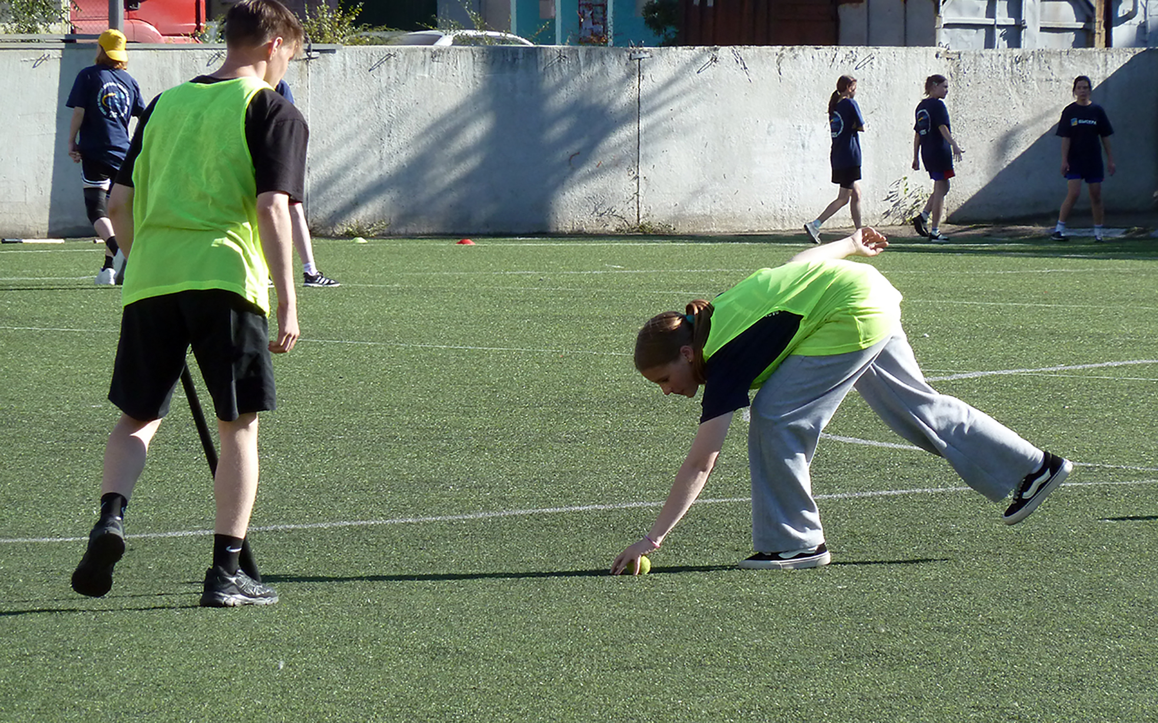 На следующий день стадион школы №11 превратился в арену настоящих спортивных страстей, где развернулись захватывающие поединки по лапте. Погода словно сама благоволила этому старинному виду спорта: яркое читинское солнце заливало поле золотистым светом, создавая идеальные условия для динамичной игры.