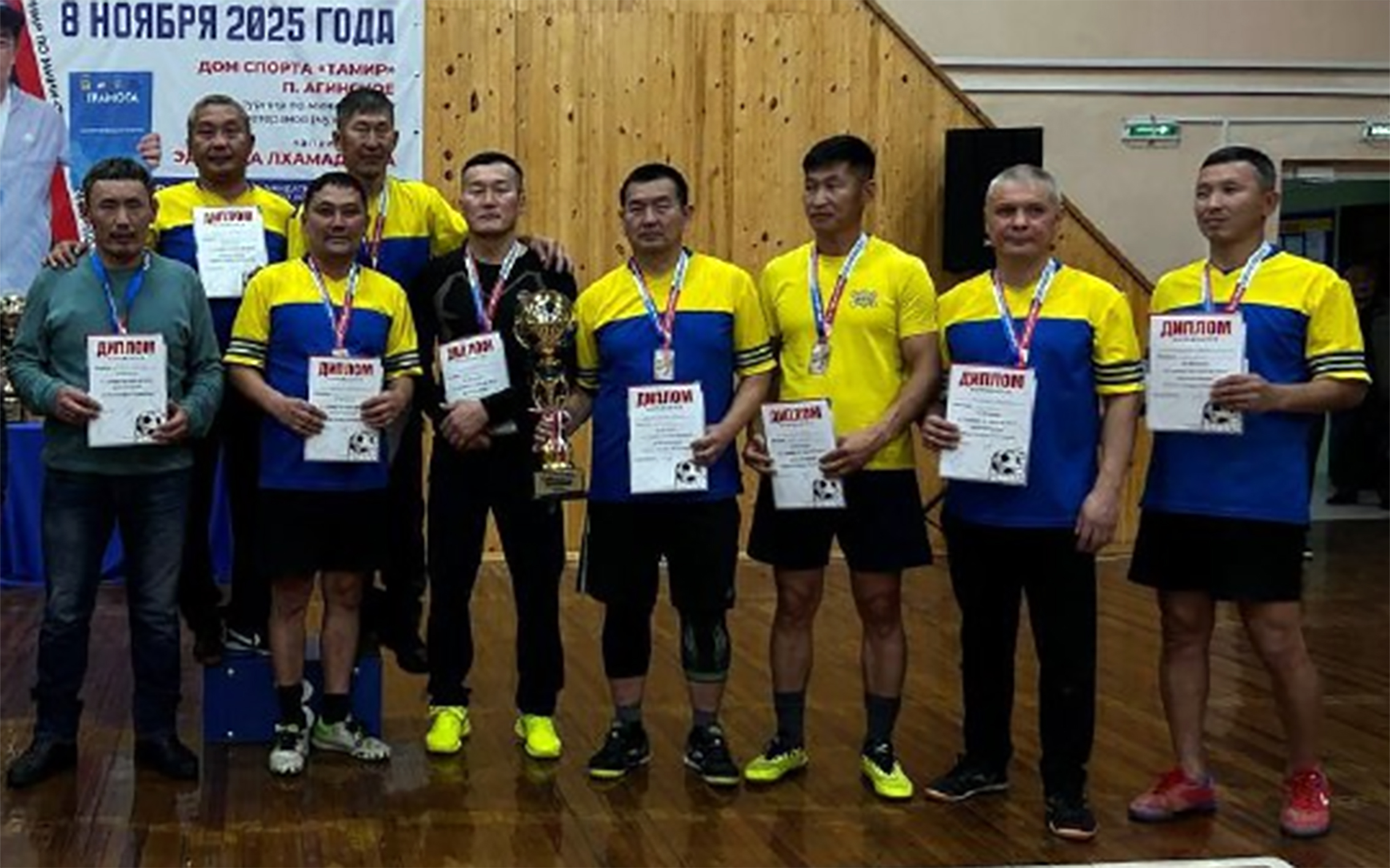 Победный пьедестал турнира памяти Эдуарда Лхамадиева, прошедшего в поселке Агинское: первое место – «Улан-Удэ-Юнайтед»; второе место – «Динамо»; третье место – «МЧС Агинский район»; четвертое место – «Кункур».
