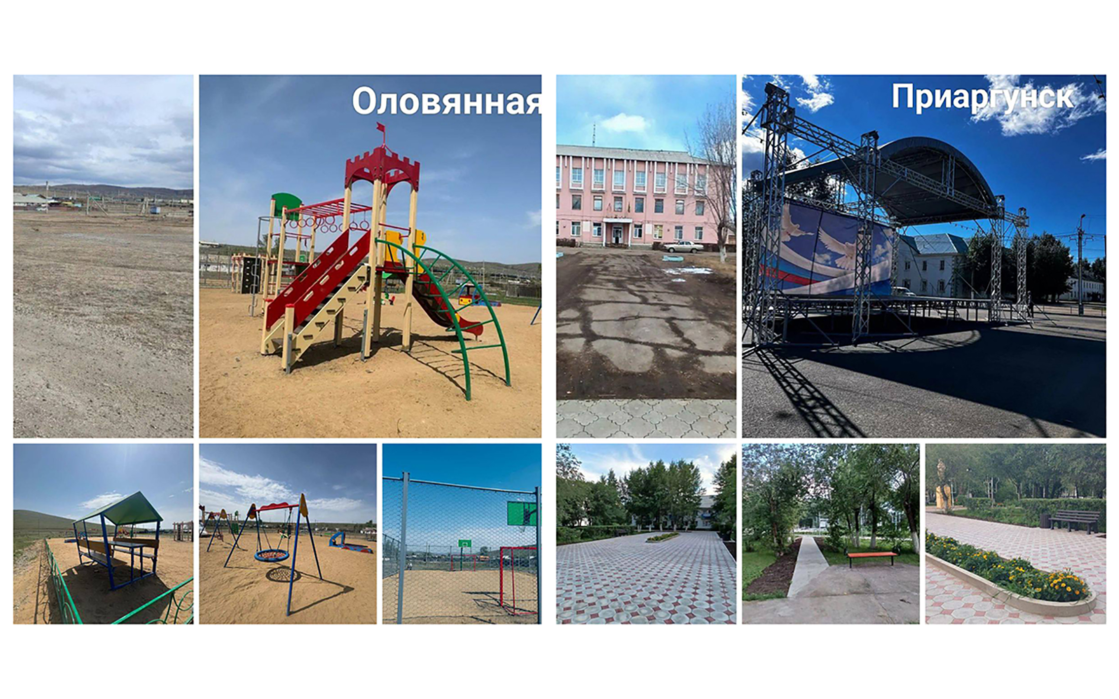 В рамках программы «Формирование комфортной городской среды» нацпроекта «Инфраструктура для жизни» в Приаргунске обустроили площадь, здесь появился сценический павильон. А в поселке Оловянная благоустроили общественную территорию на улице Линейная, 81, пространство оборудовали для игр и занятий спортом.