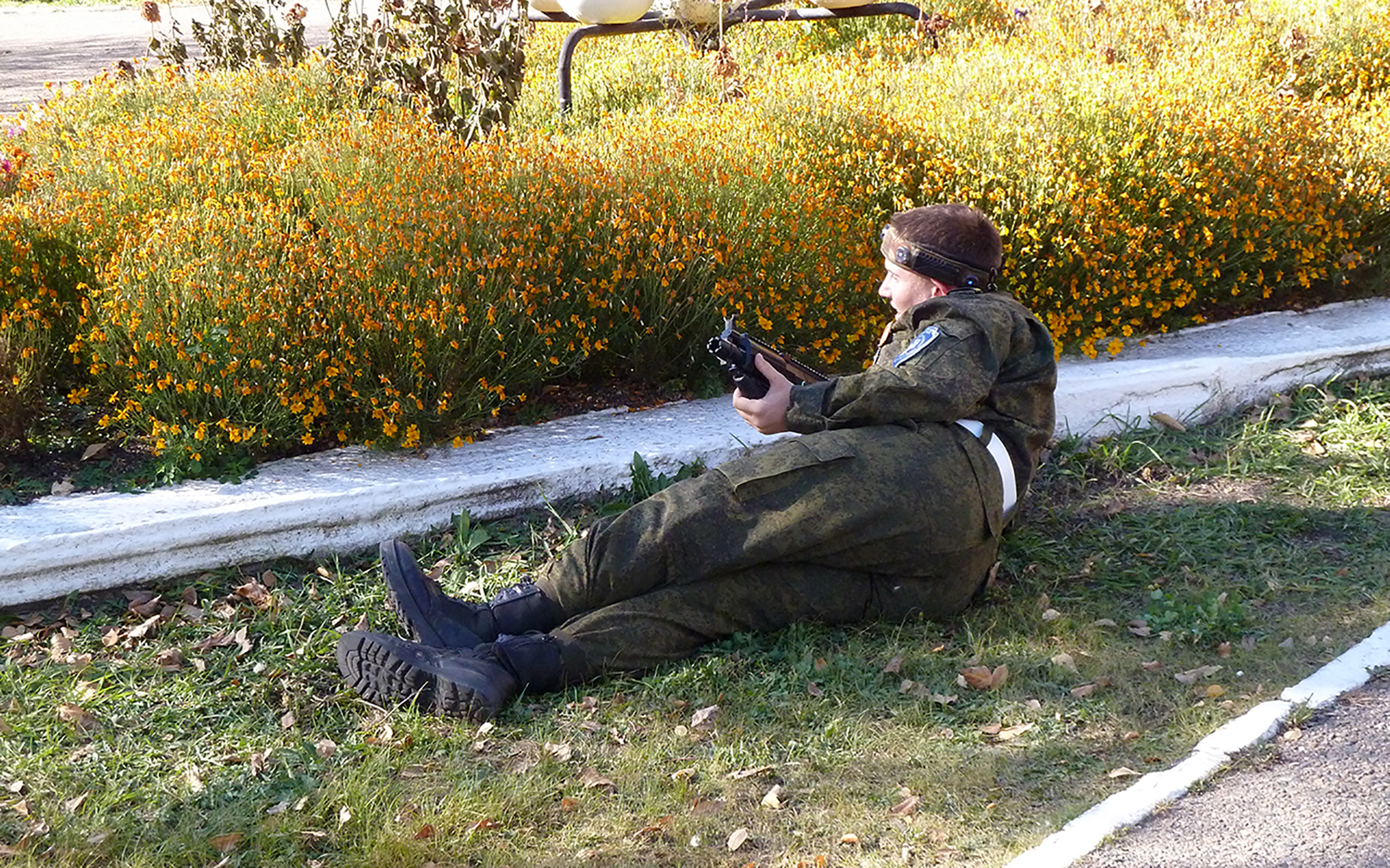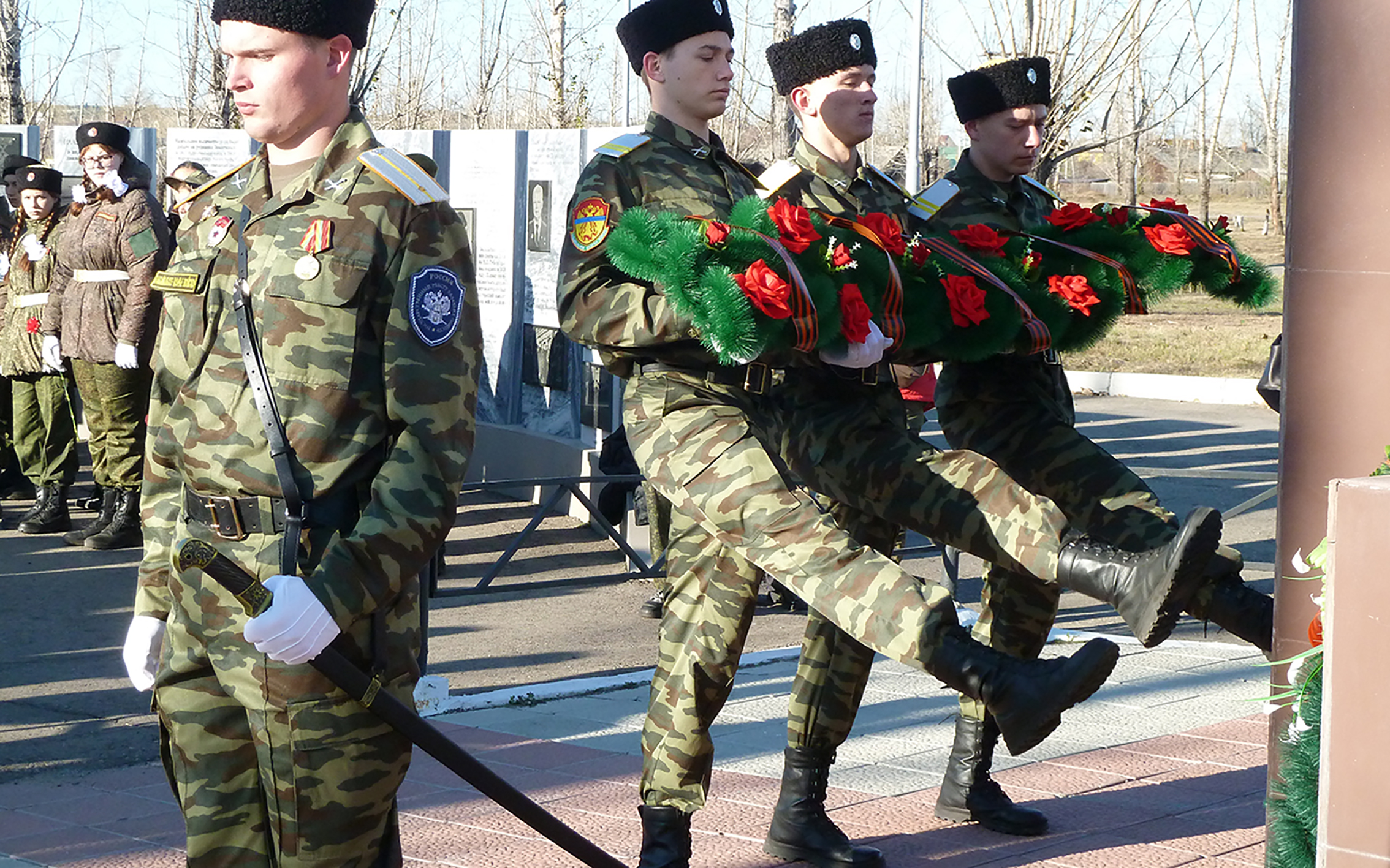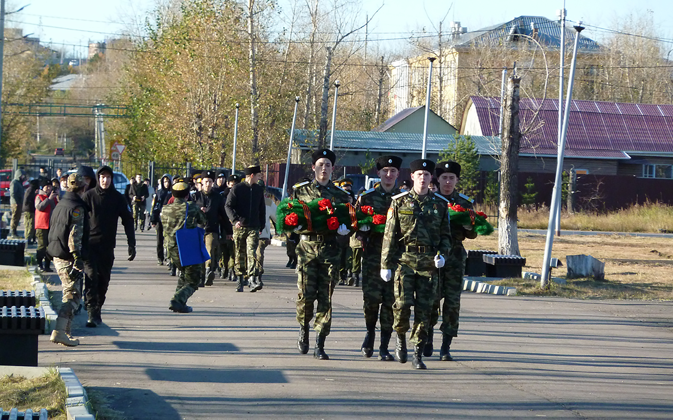 Ранним утром 4 октября Черновский район глубоко спал, прячась от колючего вкрадчивого ветра, дувшего как будто снизу, с земли. Обманчиво тёплый солнечный свет ржавыми пластами ложился на остатки поблёкшей травы. Извилистая дорога от аграрного института к историческому мемориальному комплексу в парке Угольщиков пустовала. Городской пейзаж казался набором стоп-кадров, в какую сторону ни посмотри. И вот, прорывая напряжённый осенний воздух, по дороге потянулась вереница молодых людей в камуфляже. Они шли, чтобы возложить цветы в память о героях прошлого.