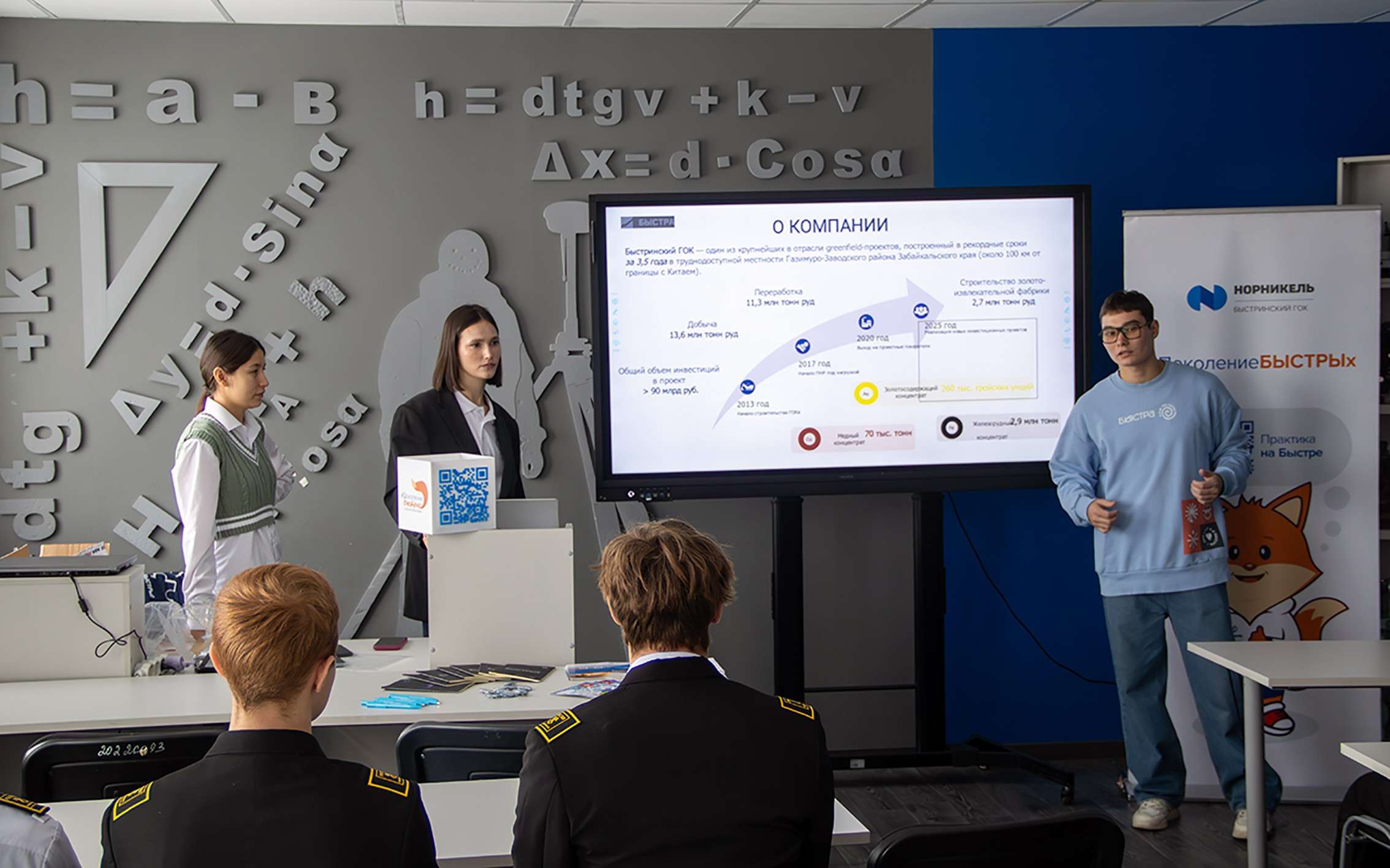 В круглом столе приняли участие два наших партнёра: «Мангазея Майнинг», «Быстринский ГОК». Они рассказали о своём опыте взаимодействия с молодёжью. В компаниях ведётся активная профориентационная работа, заключаются целевые договоры, студенты колледжа после прохождения практики на предприятиях в числе первых получают приглашения к трудоустройству, специалисты компаний участвуют в реализации образовательных программ, проводят совместные чемпионаты и конкурсы. Всё было показано в цифрах для наглядности.