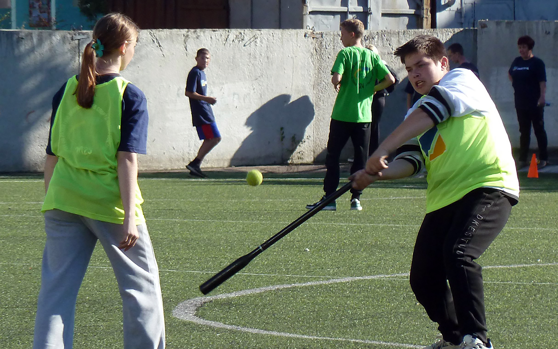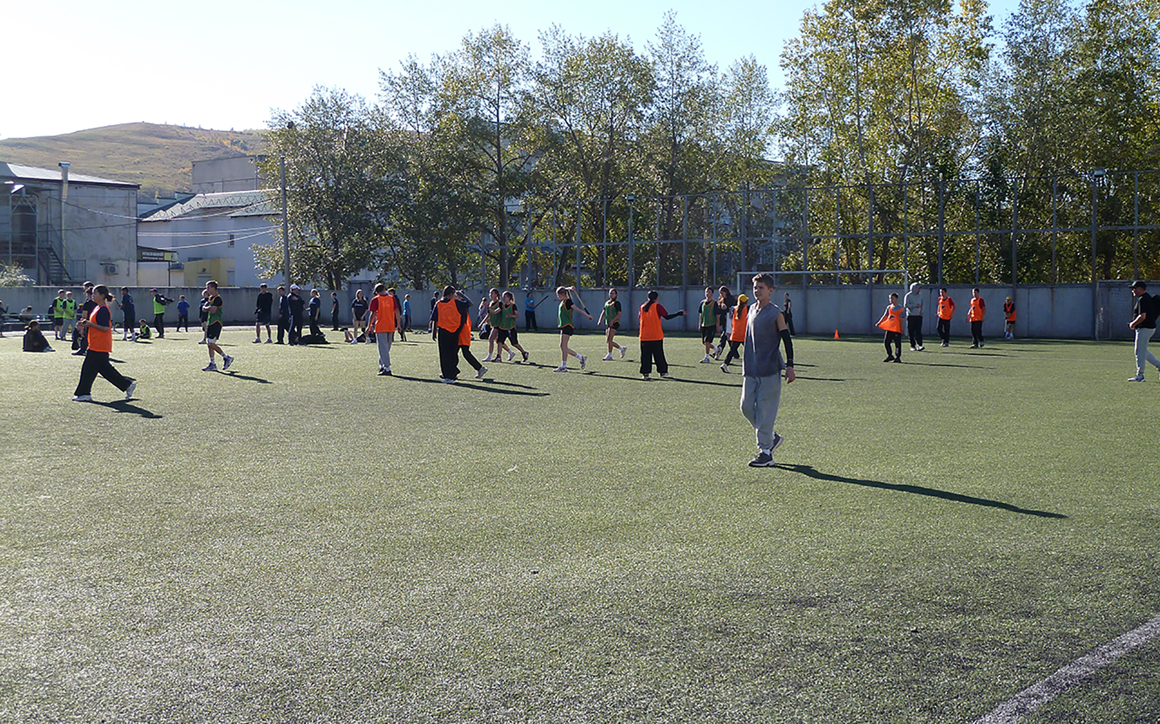 На следующий день стадион школы №11 превратился в арену настоящих спортивных страстей, где развернулись захватывающие поединки по лапте. Погода словно сама благоволила этому старинному виду спорта: яркое читинское солнце заливало поле золотистым светом, создавая идеальные условия для динамичной игры.