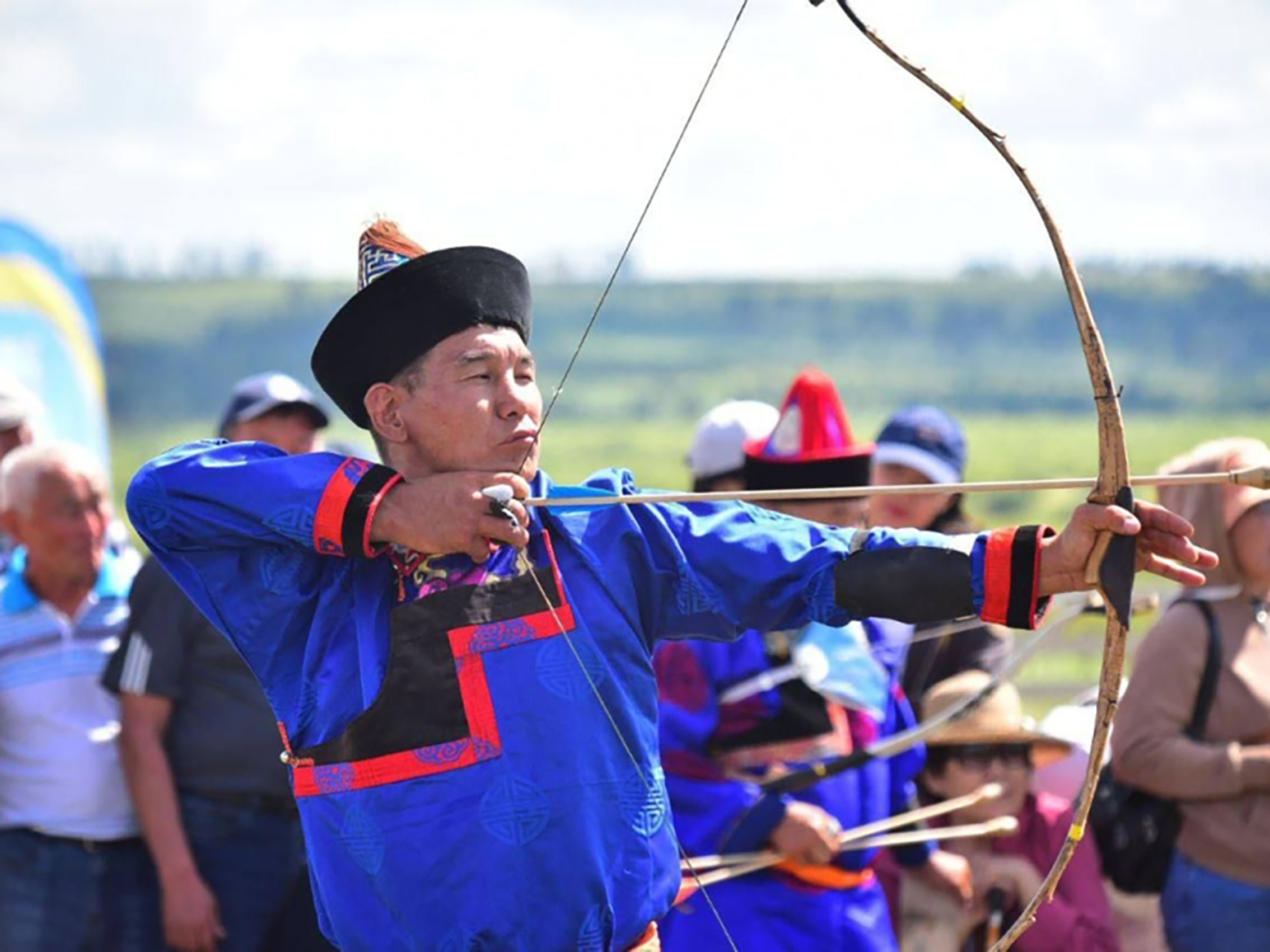 Баир Жамсуев рассказал, что с древних времен у бурятского народа особой популярностью пользовались три вида состязаний между мужчинами — бурятская борьба «Бухэ барилдаан», стрельба из лука по национальным правилам «Һур харбаан» и конные скачки на лошадях местной породы «Мори урилдаан». Вместе они называются «Эрын гурбан наадан» — «Три игры мужей».