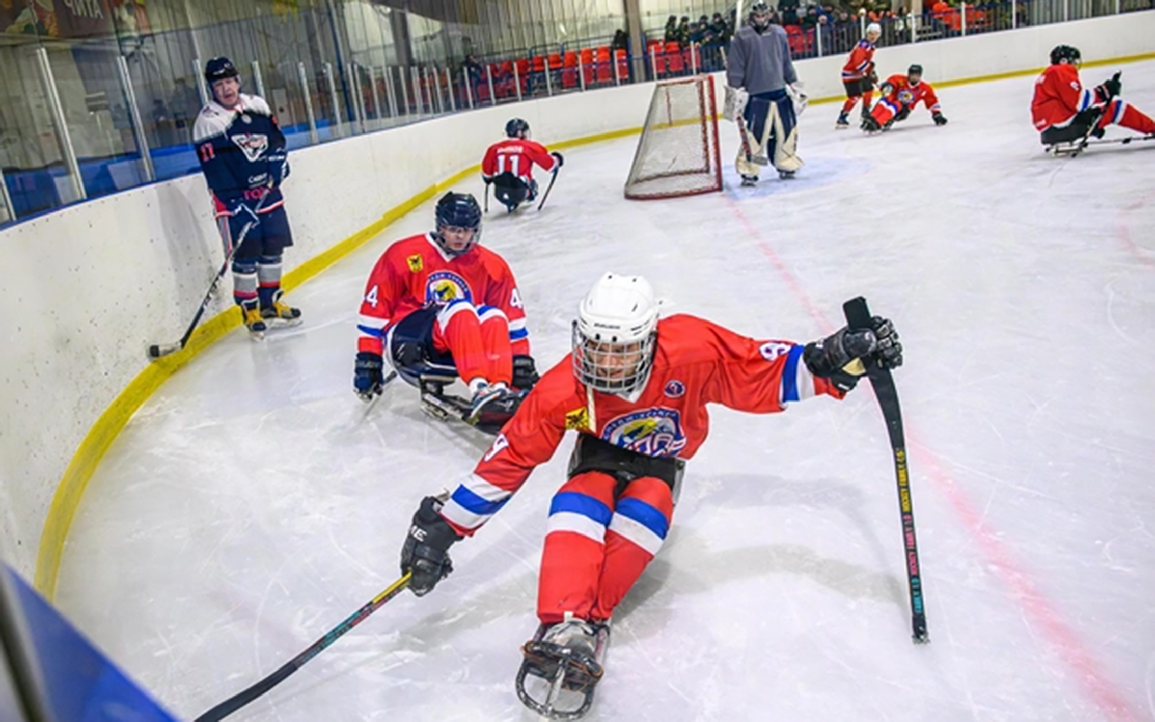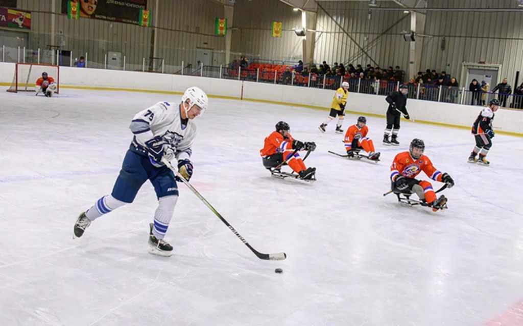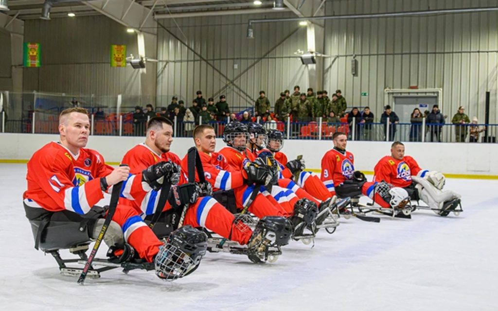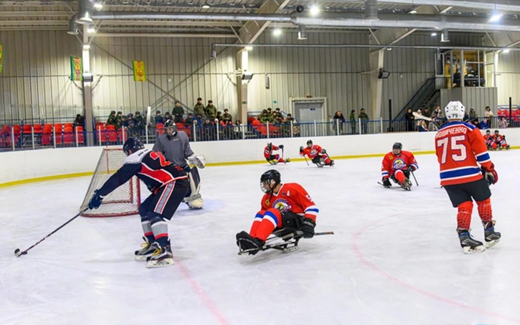 В День зимних видов спорта на льду Дворца «Чароит» в следж-хоккей сыграли ветераны спецоперации – хоккеисты команды «Кодар» и команда представителей власти, бизнеса, СМИ и фонда «Защитники Отечества».