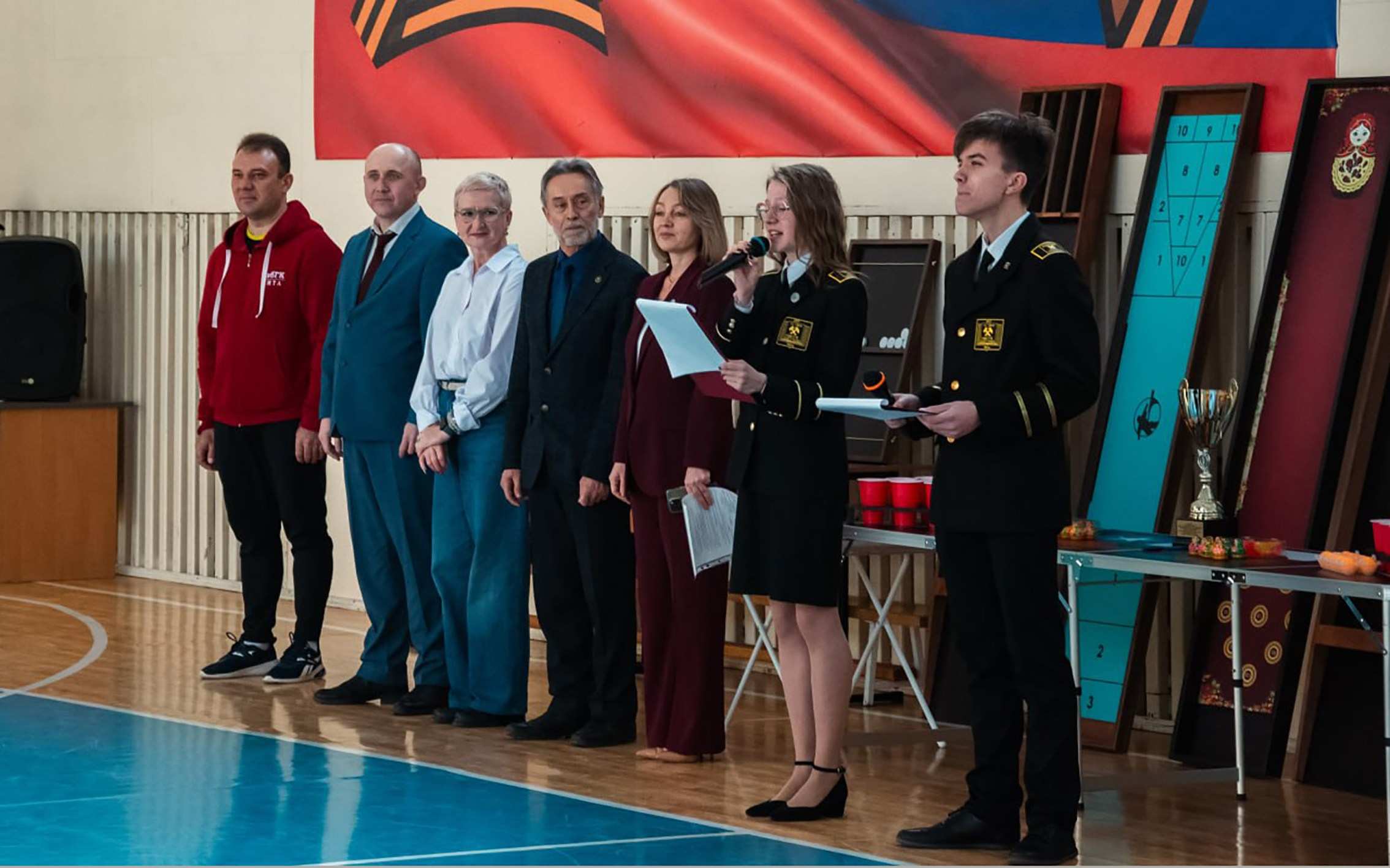 Торжественное открытие Интегрированного турнира по настольным и напольным спортивным играм и настольному теннису началось с церемонии поднятия флага и исполнения гимна России. Атмосфера была по‑настоящему праздничной: в зале царили волнение, азарт и предвкушение честной спортивной борьбы.